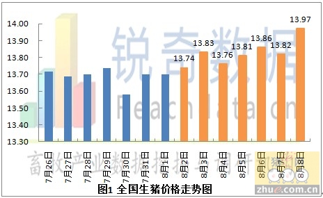 生猪市场进入第32周伊始,部分城市像湖南、湖北、浙江、四川、福建等地区生猪市场行情小幅上涨。笔者认为主要有两方面的原因促进该地区生猪市场行情好转:1、地区局部生猪存栏量下降,造成一种供不应求的局面;2、国家施行新一轮收储政策。这两方面的原因使得该地区大部分养殖户在观望行情,甚至坐地抬价,不愿意将生猪投入市场。望广大养殖户继续做好饲养管理,防止饲料霉变,及时调整存栏结构,关注疫病发展形势和行情变化,适时出栏。