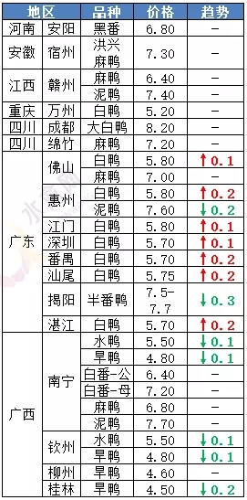 | 广西 | 南宁(水鸭) | 5.50 | -0.10 |