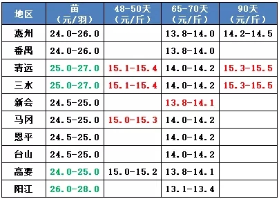 提示:以上为信息人员收集,红色代表上涨、绿色代表下跌;不同地区鹅场有一定差异,价格仅供参考!