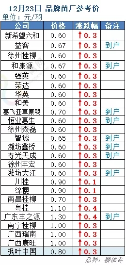 提示:以上为信息人员收集,红色代表上涨、绿色代表下跌;不同地区鹅场有一定差异,价格仅供参考!