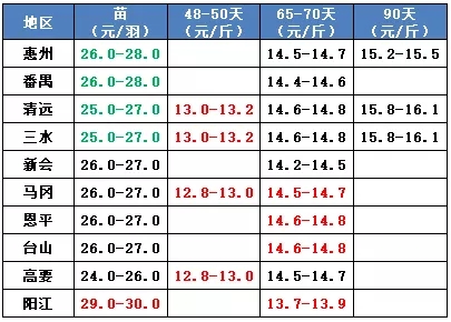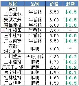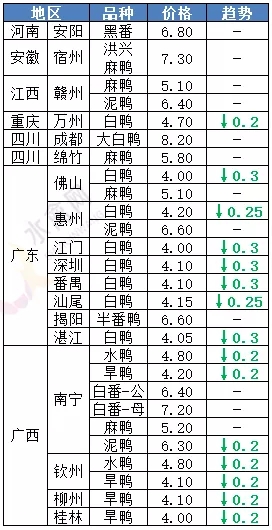 | 广西 | 南宁(水鸭) | 4.80 | -0.20 |