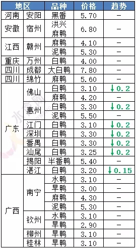 | 广西 | 南宁(水鸭) | 3.10 | - |