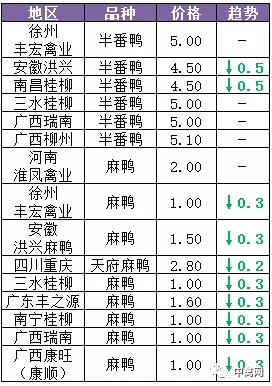| 广西 | 南宁(水鸭) | 5.00 | -0.20 |