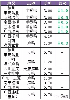 提示:以上为信息人员收集,红色代表上涨、绿色代表下跌;不同地区鹅场有一定差异,价格仅供参考!