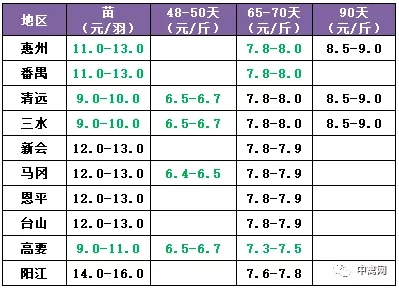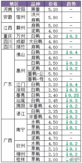 | 广西 | 南宁(水鸭) | 4.70 | - |