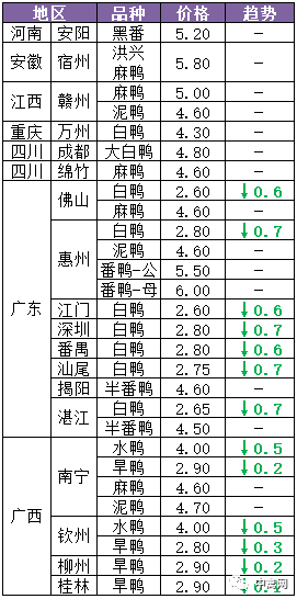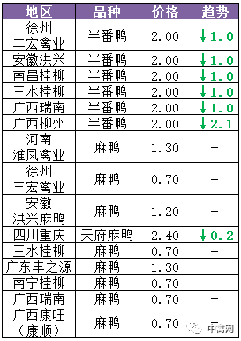 | 广西 | 南宁(水鸭) | 4.00 | -0.50 |
