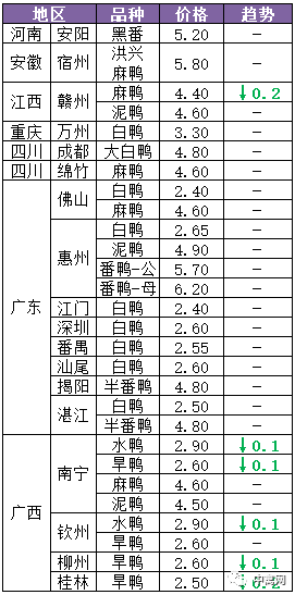 | 广西 | 南宁(水鸭) | 2.90 | -0.10 |