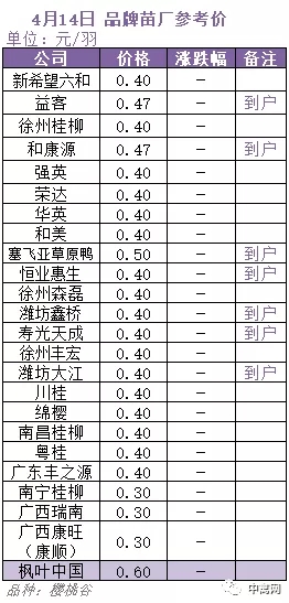 | 钦州(旱鸭) | 2.50 | -0.10 |