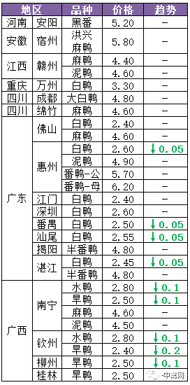 | 广西 | 南宁(水鸭) | 2.80 | -0.10 |