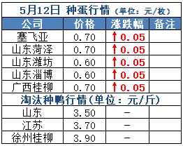 5月11日全国商品鸭出栏价格北方局部反弹、活禽广东上涨。近期北方冻品走货有所好转,部分冷藏分割厂联合提价,但整体屠宰库存依然处于高位。原料方面,山东、江苏地区毛鸭出栏价格参考2.8-3.0元/斤。