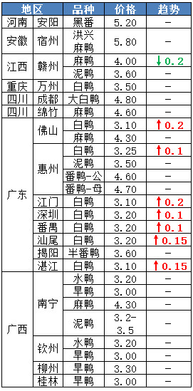 | 广西 | 南宁(水鸭) | 3.20 | - |
