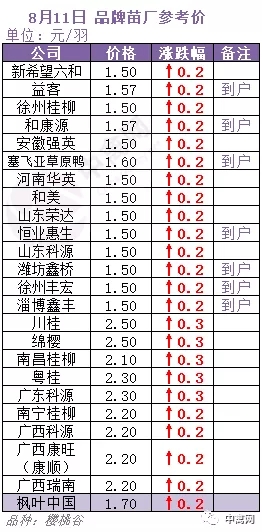 提示:以上为信息人员收集,红色代表上涨、绿色代表下跌;不同地区鹅场有一定差异,价格仅供参考!