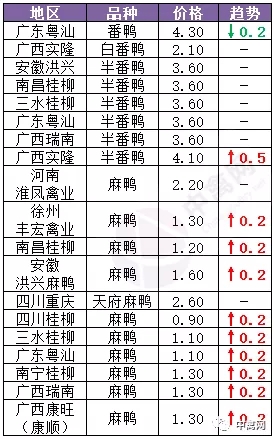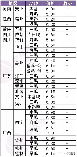 | 广西 | 南宁(水鸭) | 6.90 | - |
