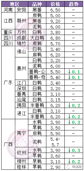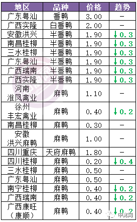 | 广西 | 南宁(水鸭) | 3.90 | -0.30 |