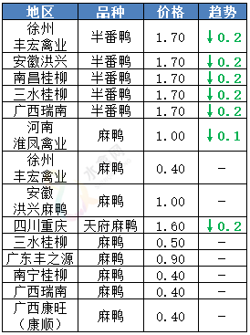 提示:以上为信息人员收集,红色代表上涨、绿色代表下跌;不同地区鹅场有一定差异,价格仅供参考!