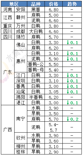 | 广西 | 南宁(水鸭) | 3.90 | - |