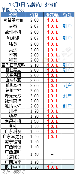 提示:以上为信息人员收集,红色代表上涨、绿色代表下跌;不同地区鹅场有一定差异,价格仅供参考!