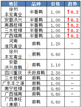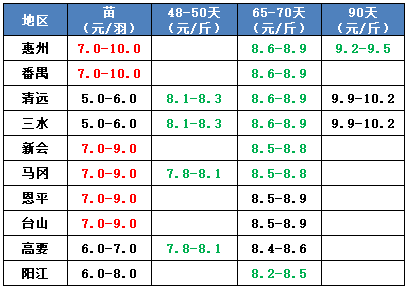 | 钦州(旱鸭) | 4.50 | -0.10 |