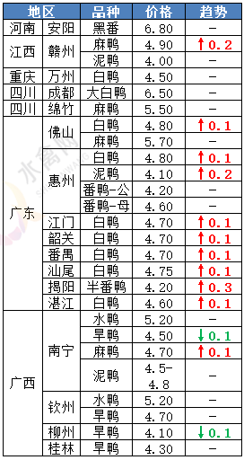 | 广西 | 南宁(水鸭) | 5.20 | - |