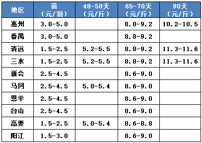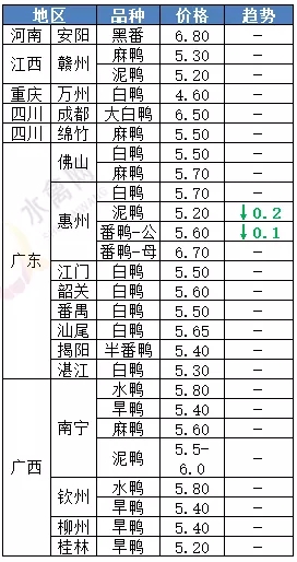| 广西 | 南宁(水鸭) | 5.80 | - |