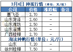 3月3日全国商品鸭出栏价格震荡趋弱、局部下滑。节后北方鲁豫皖苏地区规模冷藏企业已全线复工,由于支撑欠佳、订单不足,鸭冻品行情先高后低、全线回落。行业反馈数据来看,节后开业的工厂屠宰量普遍不高,以回收宰杀合同鸭为主,在产品市场端利空打压之下毛鸭涨价失败,山东、河南地区厂商收购价已基本回撤至4元以内。