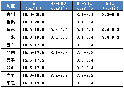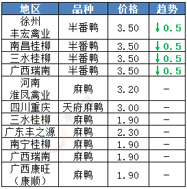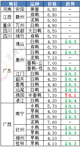| 广西 | 南宁(水鸭) | 5.70 | -0.10 |