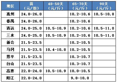 | 广西 | 南宁(水鸭) | 6.00 | - |
