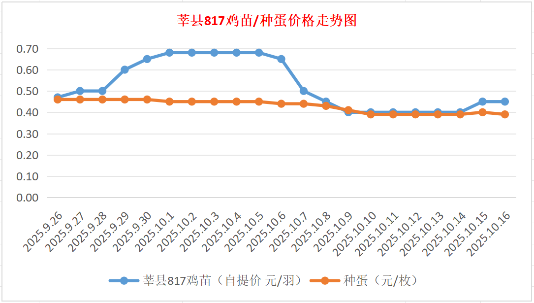 817鸡苗(混合):报价自提0.45元/羽。(稳)