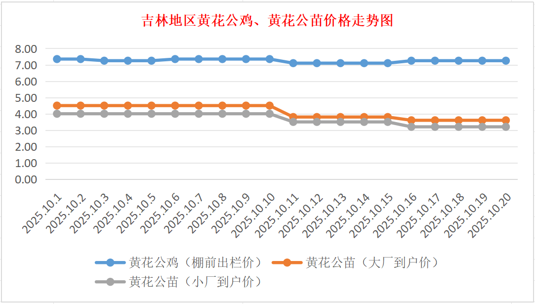 10月20日吉林黄花公鸡、鸡苗价格行情