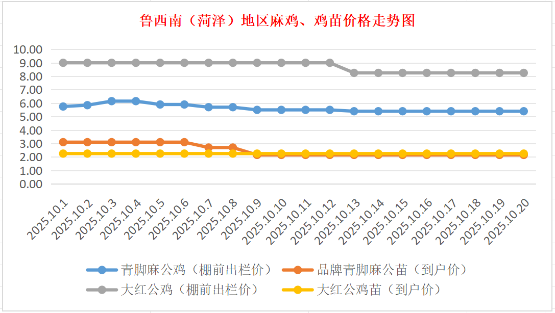 菏泽地区麻鸡、鸡苗价格走势图(来源:鸡病专业网)