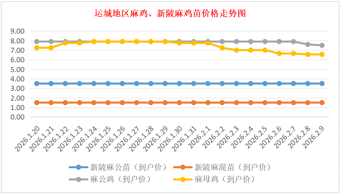 运城地区麻鸡、新陂麻鸡苗价格走势图(来源:鸡病专业网)