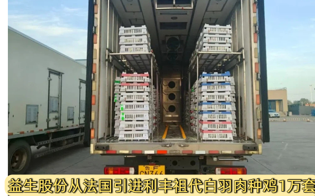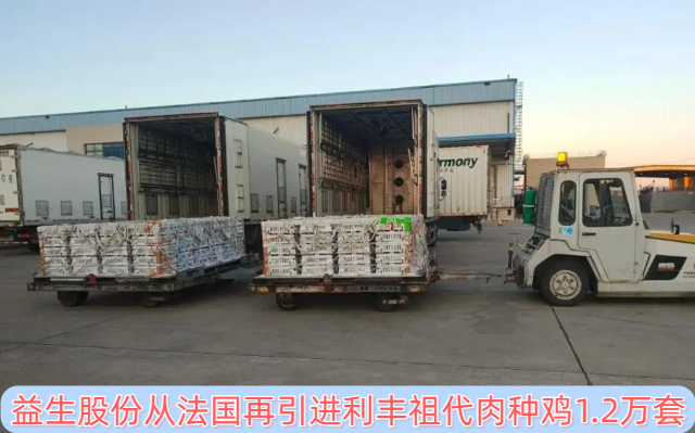 2025年9月25日,益生股份栖霞祖代场再次传来好消息: 公司成功从法国引进本月第二批,本年度第十二批利丰祖代白羽肉种鸡,数量共计1万套。 该批种鸡已于北京首都国际机场顺利入境,并进