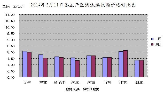 2014年3月11日全国淘汰鸡价格行情:继续上涨