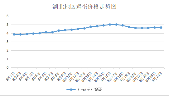 鸡病专业网消息:8月24日,湖北新洲红蛋4.65元/斤,稳;武南红蛋5元/斤,稳,粉蛋5.35元/斤,稳;麻城鸡4.65元/斤,稳;孝感鸡蛋4.65元/斤,稳。