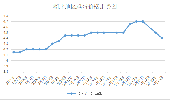鸡病专业网消息:9月24日,湖北新洲红蛋4.4元/斤,落;武南红蛋4.8元/斤,落,粉蛋5.15元/斤,落;麻城鸡4.4元/斤,落;孝感鸡蛋4.4元/斤,落。