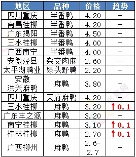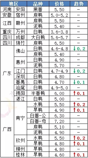 | 广西 | 南宁(水鸭) | 5.30 | - |