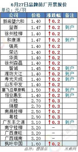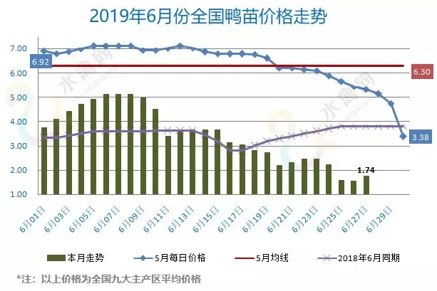 最新行情:明日上游端鸭苗、种蛋行情探底回升、止跌回暖。北苗大幅跳水后、价格跌回一字时代,目前南北区域价格差距拉开、调运相对活跃。明天广西价格暂稳,其他各区域主流孵化厂家开票报价上调0.2-0.3元/羽。全国监测区域鸭苗成交均价1.74元/羽,较去年6月同期下跌1.75元/羽,跌幅50.1%,环比5月下跌4.56元/羽。