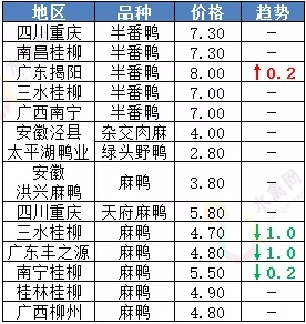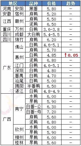 | 广西 | 南宁(水鸭) | 6.00 | - |