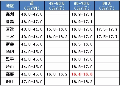 4、华中华南活禽区域行情速览