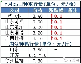 最新行情:明日上游端鸭苗、种蛋行情接续上行、涨幅收窄,各区域主流孵化厂家开票报价上调0.1-0.2元/羽不等。北方冷藏限价,鲁豫皖苏地区小白条厂家停放较多,苗厂挺价观望。全国监测区域鸭苗成交均价4.59元/羽,较去年7月同期上涨1.10元/羽,涨幅31.6%,环比6月上涨1.24元/羽。