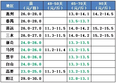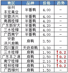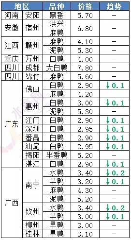 | 广西 | 南宁(水鸭) | 3.40 | -0.20 |