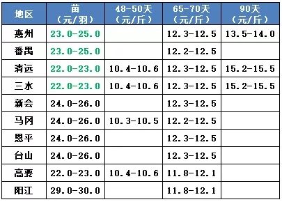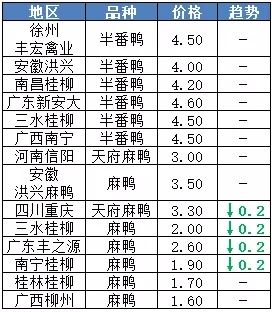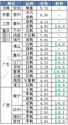 | 广西 | 南宁(水鸭) | 2.80 | -0.20 |