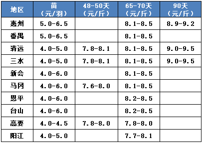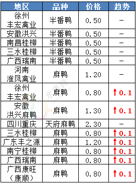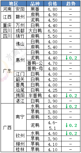 | 广西 | 南宁(水鸭) | 4.60 | -0.20 |