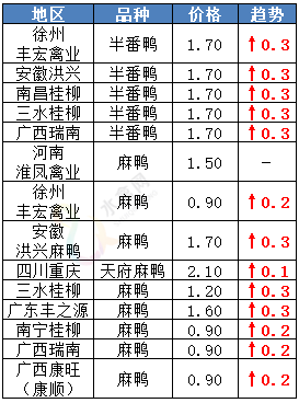 提示:以上为信息人员收集,红色代表上涨、绿色代表下跌;不同地区鹅场有一定差异,价格仅供参考!