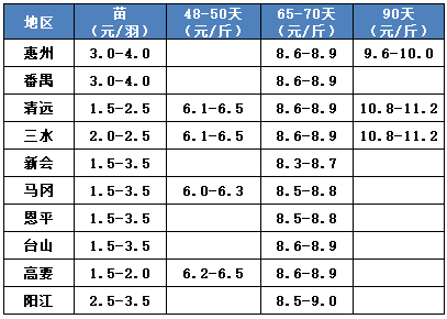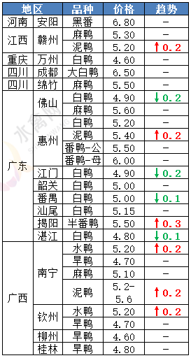 | 广西 | 南宁(水鸭) | 5.20 | 0.20 |