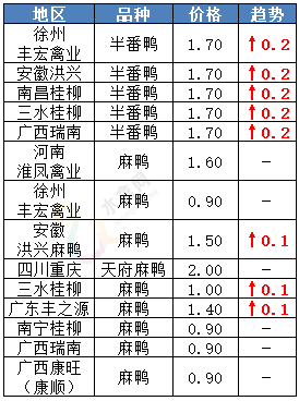提示:以上为信息人员收集,红色代表上涨、绿色代表下跌;不同地区鹅场有一定差异,价格仅供参考!