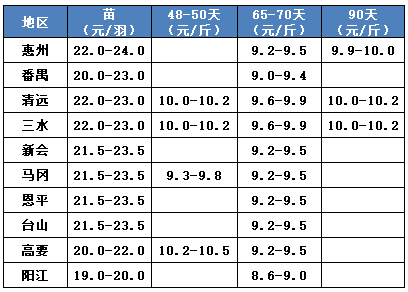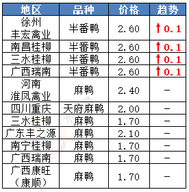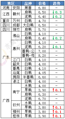 | 广西 | 南宁(水鸭) | 4.00 | - |