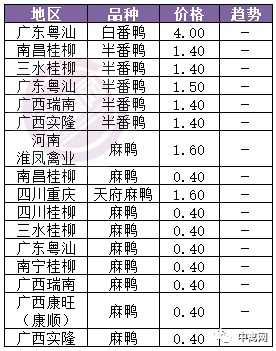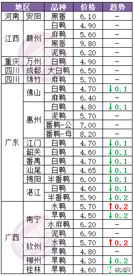 | 广西 | 南宁(水鸭) | 5.70 | 0.20 |