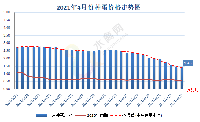 最新行情:明日上游端鸭苗、种蛋行情止跌企稳、横盘运行,各区域主流孵化厂家开票报价暂稳,目前南北方苗价已全线跌破3元整数关。近期鸭产品再度承压走低,冷藏屠宰端企业经营压力凸显,部分厂家相继对鸭苗进行采购限价。全国监测区域鸭苗成交均价2.84元/羽,较去年4月同期上涨2.34元/羽,涨幅467.1%,环比3月下跌1.64元/羽。