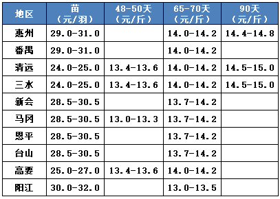 | 广西 | 南宁(水鸭) | 5.90 | 0.10 |